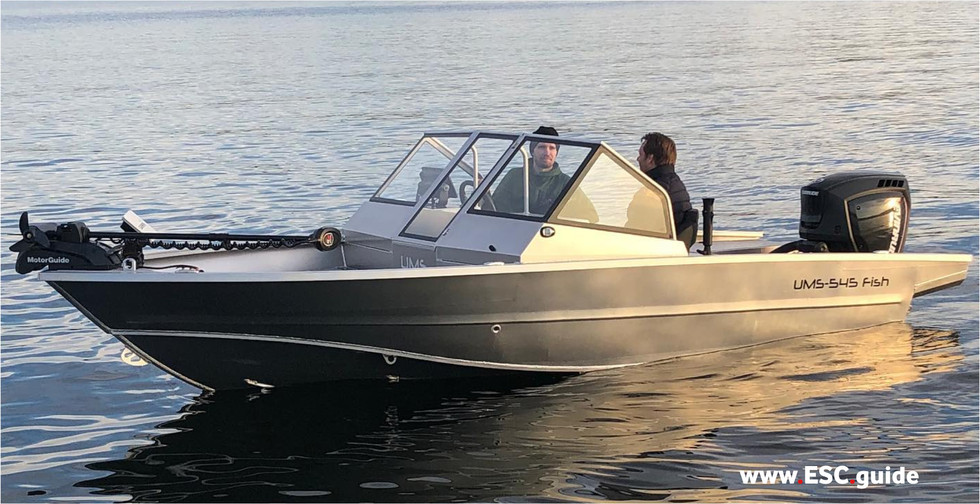 The boat UMS 545 DC Fishing is the embodiment of a watercraft convenient for fishing and recreation on the water with a family at the same time. This is possible due to the seat-transformer integrated into the aft fish platform.