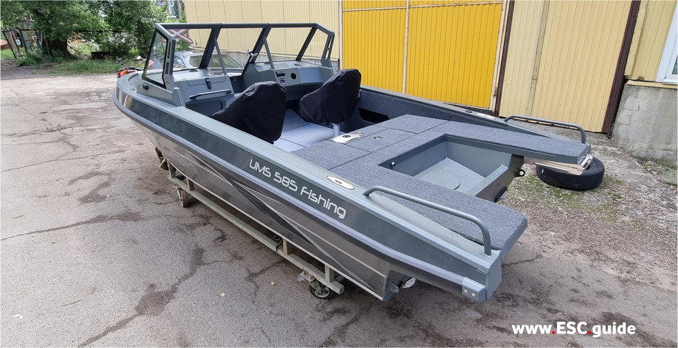 The UMS 585 DC Fishing boat is designed for active fishing, it is a fast and dynamic boat with a maximum engine of up to 150 hp. The boat has all the elements of fishing boats: a locker for six fishing rods, an aerator with a volume of 90 liters in the bow fish platform, a comfortable aft fish platform with two integrated seats and the possibility of additionally install a fisherman’s seat and a pole for towing a skier or a wakeboarder.