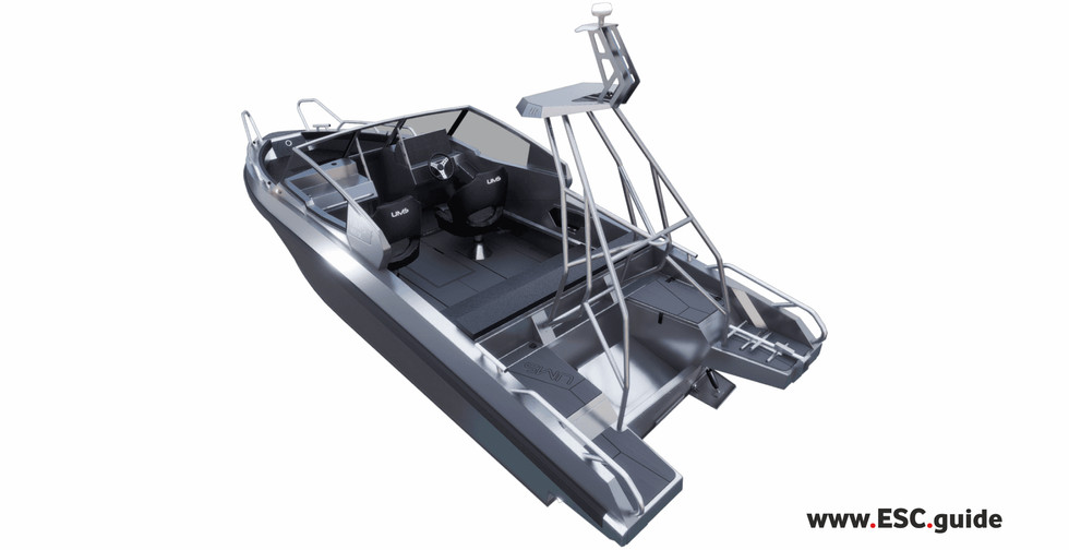 Indicator and sender included Swim platforms (left and right) Welded cleats – 4 pcs, railings, ladder “UMS”
